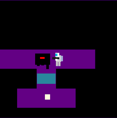 Сначала я думал о квадратиках как о пикселях. Ну что можно сделать? Воспринимать как кадр 8x8? Ужасно. Мерцать квадратиками через кадр, тем самым удвоить их число? Ещё хуже. Я подумал о лабиринте. Но если лабиринт хоть сколько-нибудь сложен, то даже с оптимизацией расхода прямоугольников их не хватит. Тогда я подумал о зоне видимости! Пусть персонаж игры видит вокруг себя только несколько блоков, а дальше - все скрывает тьма. Но тогда какой смысл в остальной области экрана? Мы просто получаем игру 7x7.
